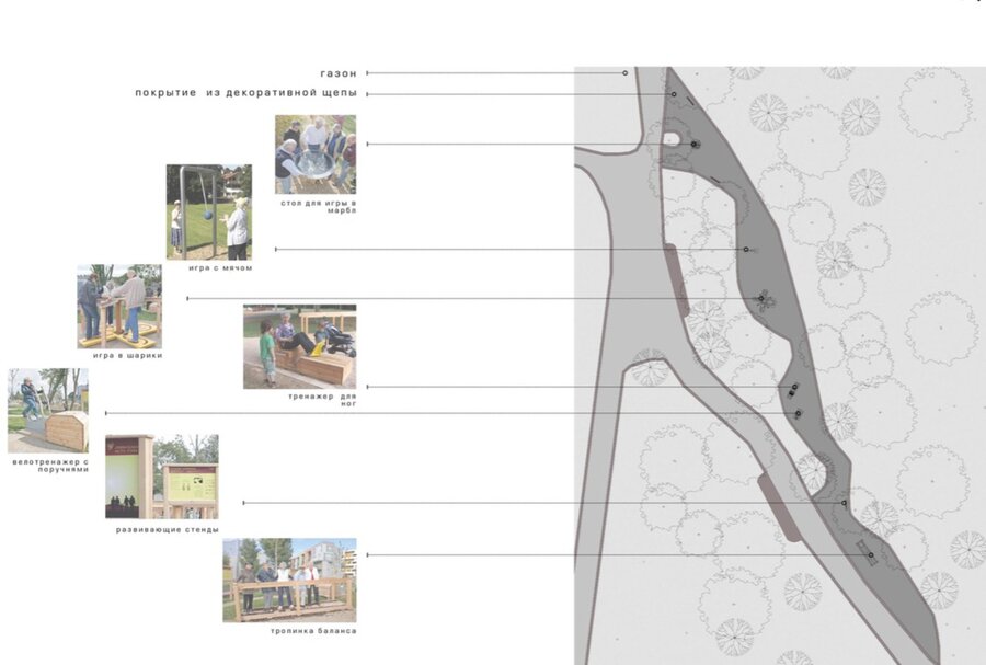 На отельной территории поставят различные установки для тренировки мыщц, координации и баланса, памяти и умственных способностей, а также стол для игры в Марбл. Согласно материалам парка, спортивную площадку для москвичей 60+ комлексно благоустроят к середине осени 2017 года.